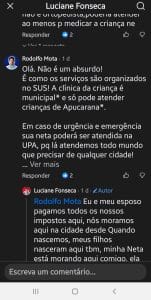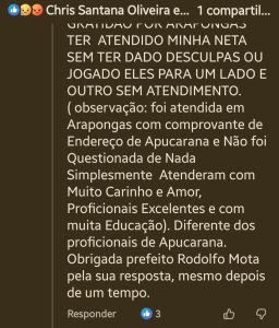Veja a cobrança feita pela avó da criança ao prefeito Rodolfo Mota que faz uma das piores gestões da história de Apucarana. Rodolfo está perdido como prefeito, só viaja; usa suas redes sociais como palanque eleitoral; vive duas crises de assédios sexuais em seu mandato; fechou escola municipal e entrou em dividida com a comunidade escolar; está com Hospital Municipal fechado; com vários parentes empregados na prefeitura, inclusive sua esposa; e banca na imprensa como um prefeito bem avaliado, mas as redes sociais mostram o contrário. O Portal AN Notícias procurou a secretaria de Saúde de Apucarana que não respondeu nossas perguntas.